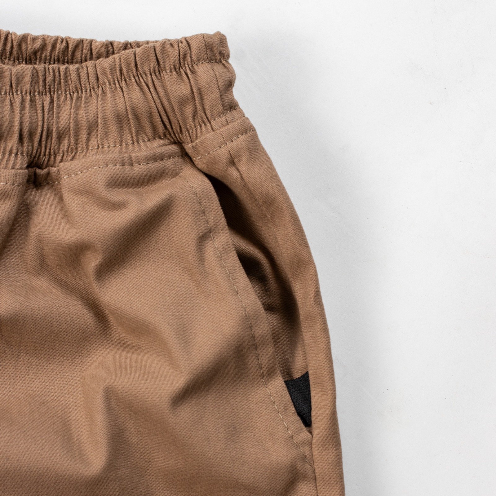 Bermuda Mayas, color khaki, Gabardina strech, con elasticos en los bolsillos laterales, bolsas tracera y lateral, cordon ajsutable.