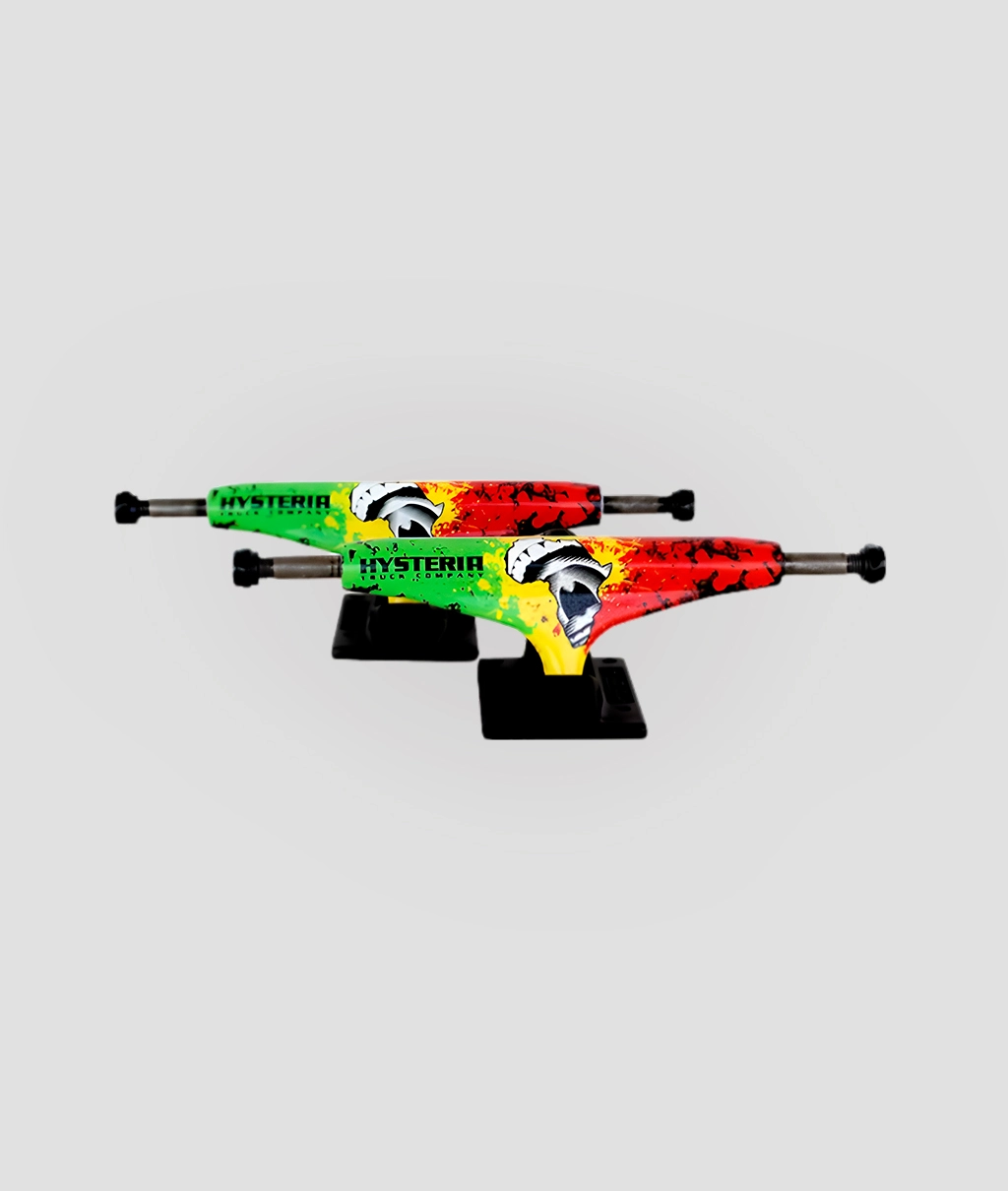 Fabricados con acero sólido, son resistentes y soportan el impacto y la abrasión, características esenciales para un rendimiento óptimo en el skateboarding. Con gomas de dureza media, para un buen equilibrio entre flexibilidad y estabilidad. La placa base está hecha de aluminio y el kingpin es de grado 8, lo que asegura una sólida construcción y confiabilidad en su uso.